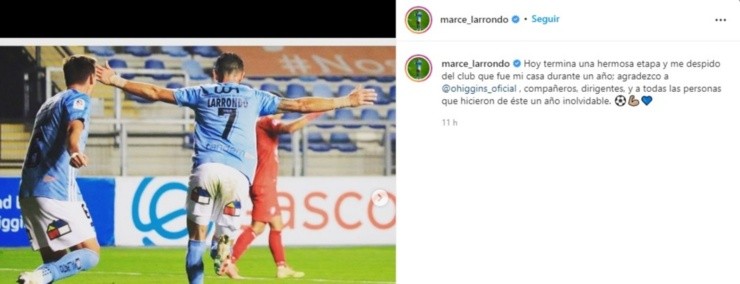 © Agencia UNOLarrondo se despidió de O'Higgins con sentido mensaje en Redes Sociales.