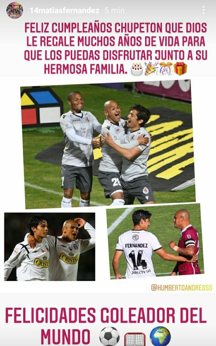 “Feliz cumpleaños chupetón, que Dios le regale muchos años de vida para que los puedas disfrutar junto a su hermosa familia. Felicidades goleador del mundo”, fueron las palabras que le escribió Matías Fernández.