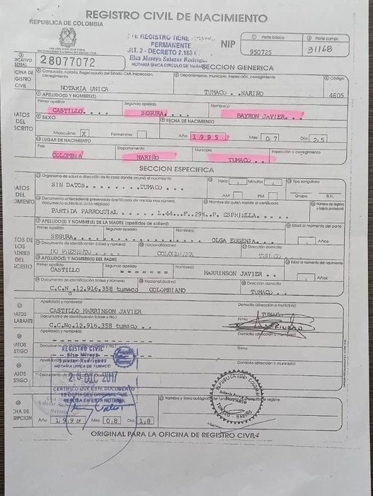 Resulta que el jugador ecuatoriano Byron Castillo -quien enfrentó a Chile en los dos compromisos de las eliminatorias- al parecer no sería de origen ecuatoriano y, un acta de nacimiento que circula en Redes Sociales, sitúa su lugar de nacimiento en Colombia.