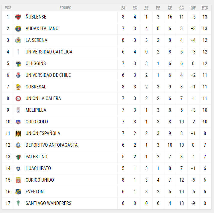 Tres puntos importantes que consiguieron los pupilos de Jaime García, quienes llegan a la primera posición del campeonato con un total de 13 puntos en esta octava fecha, mientras que Curicó Unido se queda en la decimoquinta posición con seis unidades.