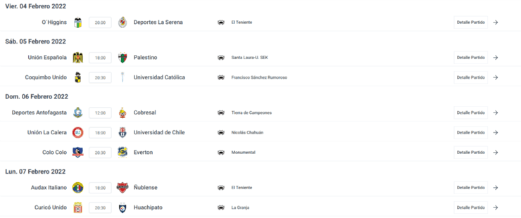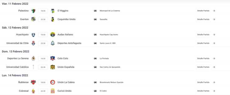 Por otra parte, Colo Colo visitará a Deportes La Serena en el Estadio La Portada durante el domingo 13 de febrero a partir de las 18:00 horas, mientras que Universidad Católica recibirá a la Unión Española el mismo día a partir de las 20:30 horas en San Carlos de Apoquindo.