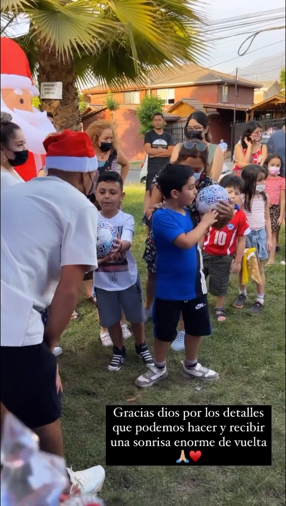 El defensor del cuadro millonario entregó regalos a todos los niños en una especie de viejo pascuero en la ciudad de Santa Cruz, donde nació el zaguero nacional y por la cual aprovechó de compartir y saludar a los pequeños fanáticos.