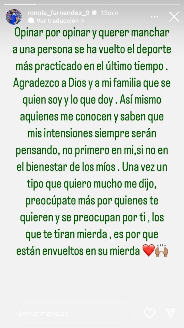 Una pelea a golpes entre Ronnie Fernández y Cristóbal Campos sacudió al mundo azul, y aunque no se conocen todos los detalles, el delantero fue duramente criticado en redes sociales, por lo que utilizó su cuenta de Instagram para hacer sus descargos.