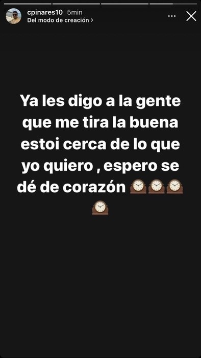 “Yo les digo a la gente que me tira la buena, estoy cerca de lo que yo quiero, espero que se dé de corazón”, subió Pinares a su cuenta oficial de Instagram despertando el interés de la parcialidad cruzada que espera ver un segundo ciclo tan exitoso como el que tuvo en su primer paso por la Universidad Católica.
