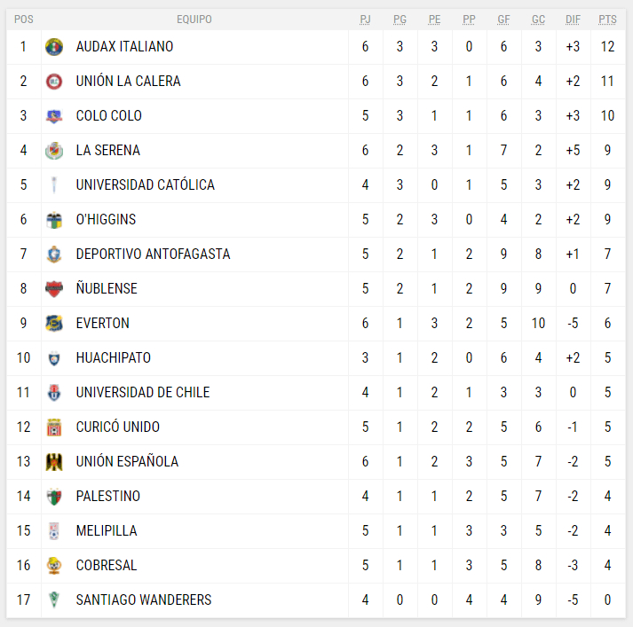Con el empate alcanzado durante esta tarde, el cuadro de Audax Italiano queda como único líder del campeonato sumando un total de 12 puntos, mientras que la Unión Española llega a la decimotercera posición con tan solo cinco unidades.