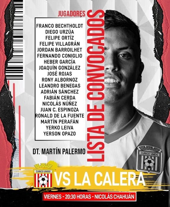 Por una nueva fecha delCampeonato AFP PlanVital,Unión La Calerarecibe en su predio al conjunto deCuricó Unidoen un choque que se realizará este viernes16de julio. El emparejamiento será transmitidoEN VIVO Y EN DIRECTOa través de la señal deEstadio TNT Sports, TNT Sports HD y TNT Sports 2.