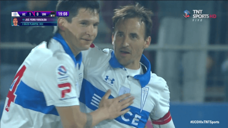 Los Cruzados tuvieron su primera gran opción en el partido y no fallaron a los 19 minutos, en donde tras una gran jugada colectiva, los dirigidos por Ariel Holan se pusieron arriba en el marcador gracias a la anotación de José Pedro Fuenzalida.