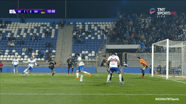Alfonso Parot hizo un cambio de frente excepcional para Mauricio Isla, quien le dejó el balón mansito en el punto penal al ‘Chapita’, quien definió de buena forma para vencer al portero Alexis Martín Arias y así romper el cero en San Carlos de Apoquindo.