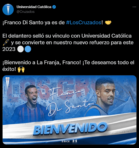 Si bien la misma Universidad Católica había confirmado un principio de acuerdo con el delantero argentino, ahora se hace oficial: Franco Di Santo es el nuevo refuerzo cruzado.