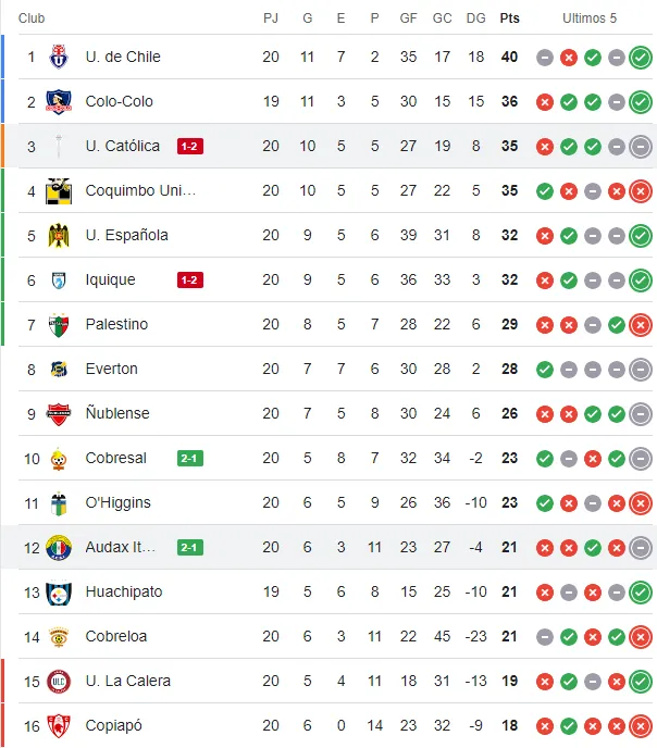Con este resultado, Audax Italiano logró salir de los puestos de peligro de descenso escalando hasta la casilla 12, mientras que “La Franja” se mantiene en la tercera posición con 35, a 1 de Colo Colo (con un partido menos) y a 5 de Universidad de Chile, actual puntero del certamen.