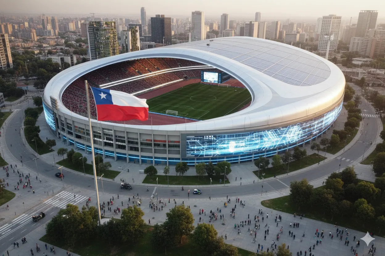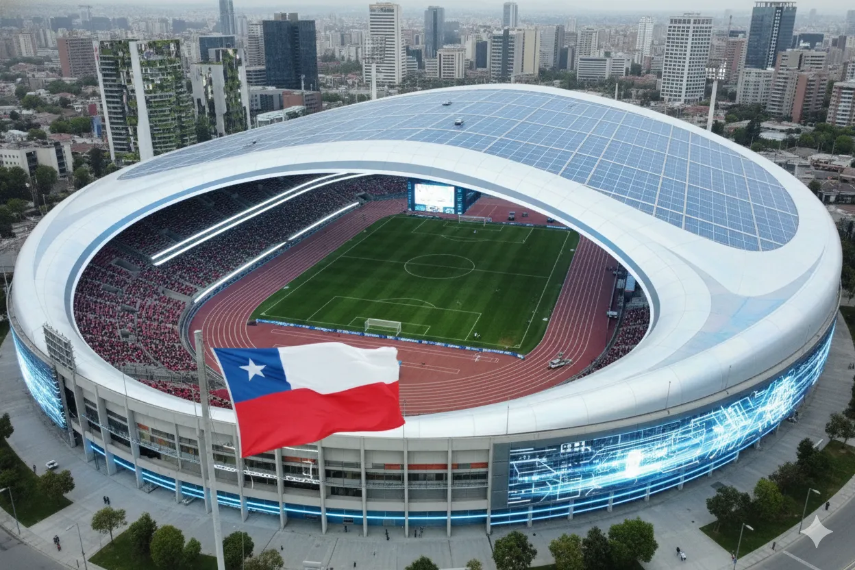 Bolavip Chile le pidió a una plataforma de IA, que diseñe un recinto deportivo futurista, diseñado para albergar a 80.000 espectadores, combinando una obra imponente con la eficiencia tecnológica y el respeto por la sostenibilidad.