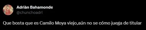 Uno de los más apuntados, es el ex volante de Universidad de Chile, Camilo Moya, quien ha sido sobrepasado en la mitad de la cancha y no ha podido encontrar la vuelta al partid, graficándose en él a través de Twitter, lo mostrado en la cancha de Macul.