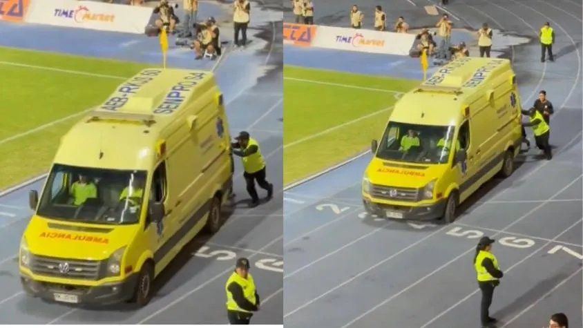 El problema se generó ahí, porque la ambulancia que ingresó al campo de juego para socorrer al jugador lesionado ¡quedó en panne! ante la incredulidad de la parcialidad dragona.