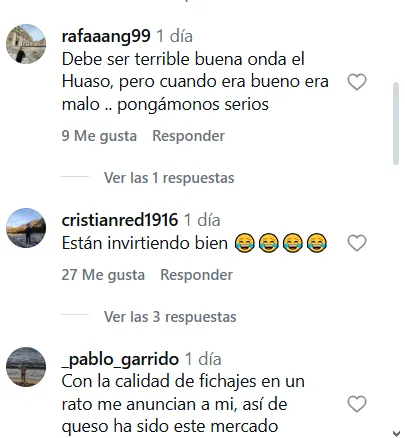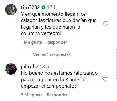 No quedaron nada contentos. Los fanáticos del club aseguraron que con esos refuerzos van "derechito a la B" y lamentan además la partida de varias figuras.