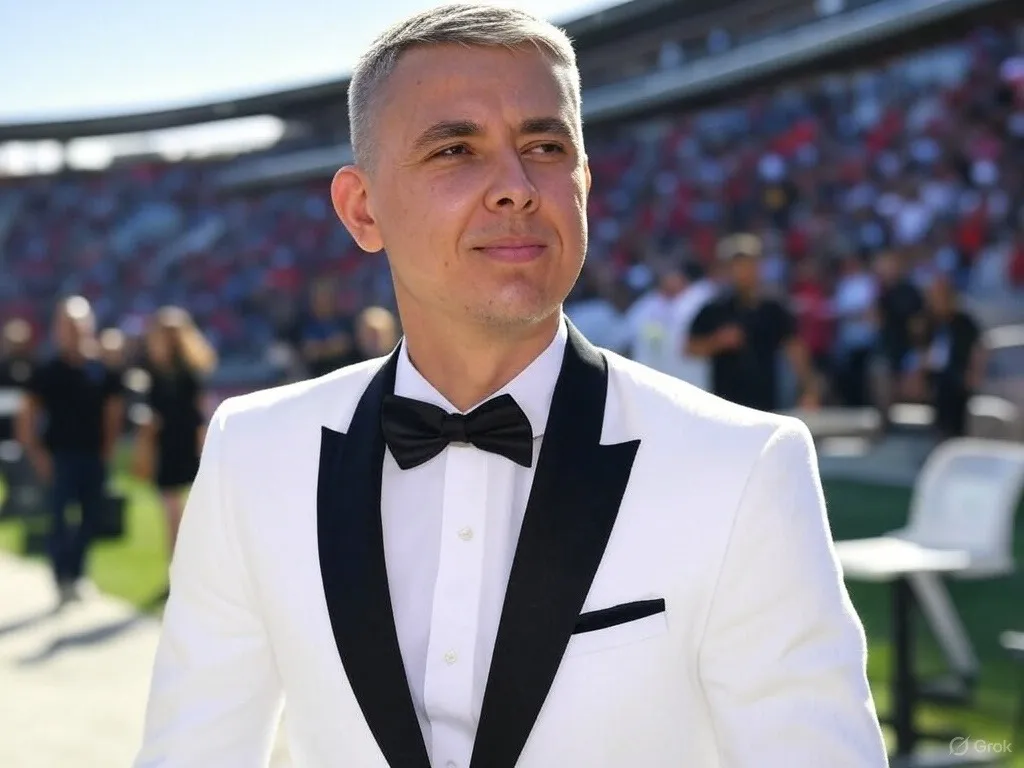 Su impecable smoking blanco con negro se robó las miradas en el Estadio Monumental Isidro Romero Carbo y se hizo viral en las diversas redes sociales.