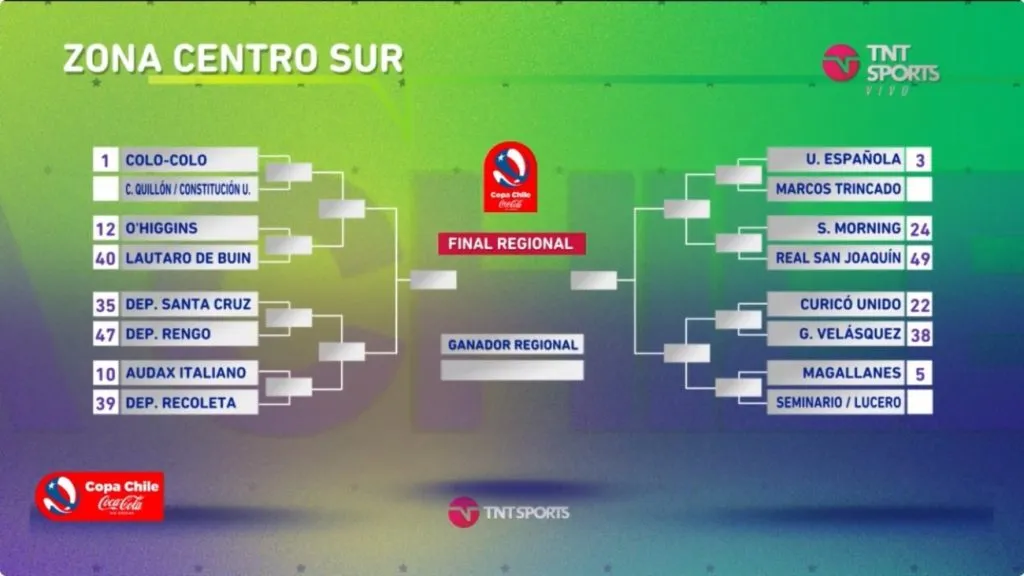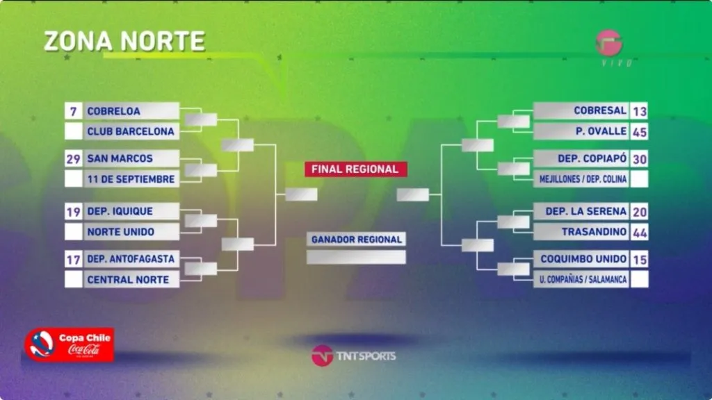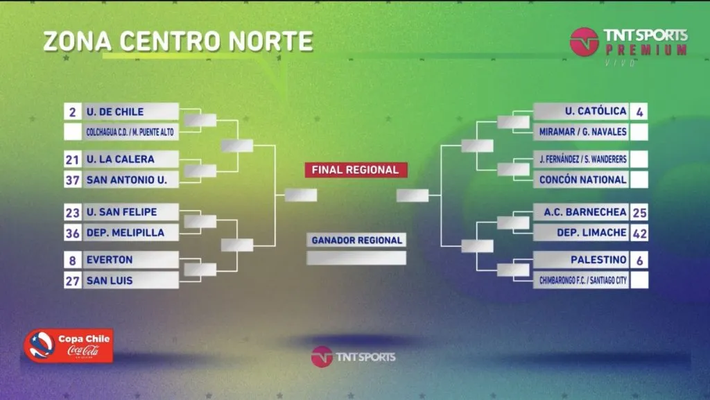 ¿Contra quiénes juegan los grandes del país? En la Zona Centro-Norte se determinó que Universidad de Chile enfrentará al ganador de la llave entre Colchagua y Municipal Puente Alto. La UC jugará contra Miramar o Glorias Navales. Por su parte, Colo Colo, en la Zona Centro-Sur, se medirá ante el vencedor entre Club Deportivo Quillón y Constitución Unido.