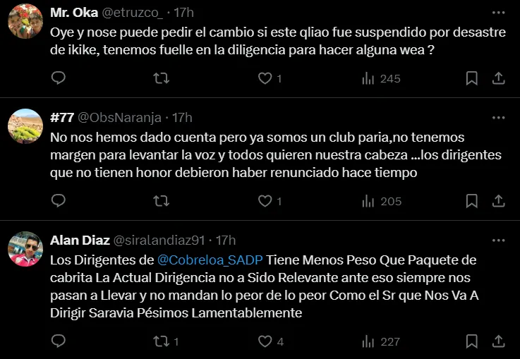 A raíz de esta situación, los simpatizantes del elenco de la Región de Antofagasta hicieron sentir su malestar por esta determinación en las diversas redes sociales.
