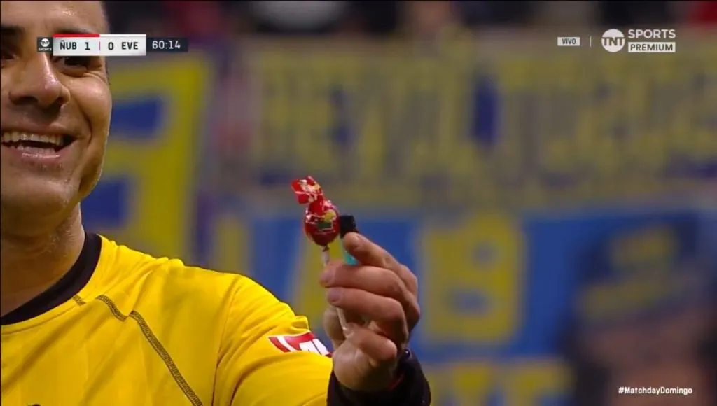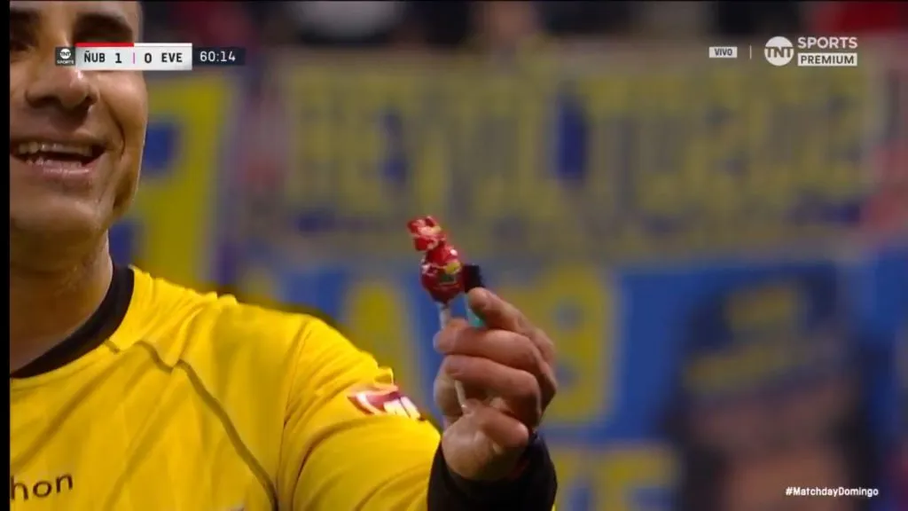 Las cámaras de TNT Sports lograron identificar que uno de los elementos fue un coyac, entregando un nuevo momento de extraños elementos que el juez ha recogido desde un terreno de juego, en la que ha recibido empanadas, sopaipillas y en esta oportunidad, un conocido dulce.