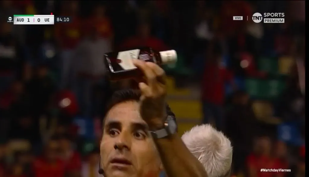 La grave situación fue alertada de inmediato por el juez Piero Maza, quien tomó la botella de whisky y advirtió con la suspensión del partido. Por suerte, la situación no pasó a mayores y el partido pudo seguir sin incidentes.