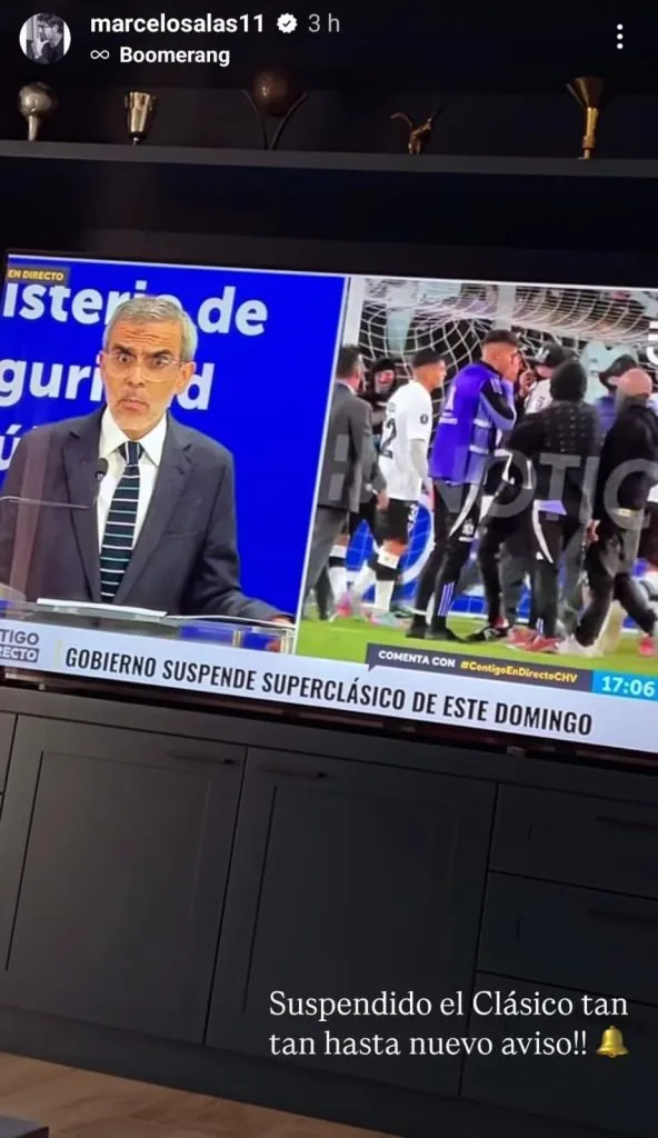 Uno de los que se manifestó por redes sociales fue el exdelantero de Universidad de Chile, Marcelo Salas, quien con ironía lanzó un sutil mensaje en redes sociales al enterarse de la suspensión del Superclásico.