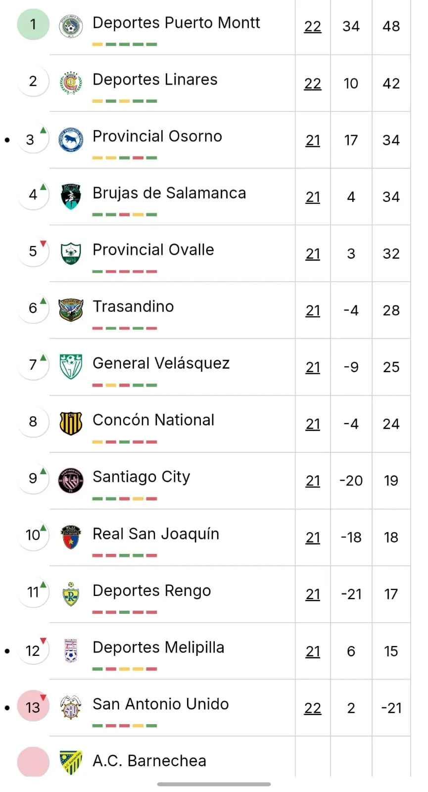 Finalmente esta jornada, la ANFP en sus canales oficiales actualizó la tabla de posiciones de la Segunda División Profesional donde el elenco lila aparece ni más ni menos que con -21 puntos, por lo que en la sumatoria sufrió la resta de 52 unidades.