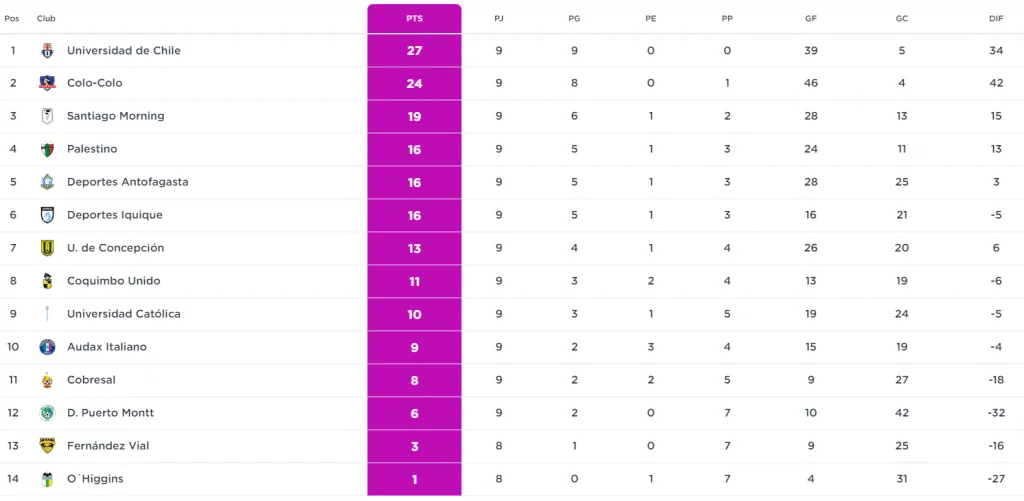 © Universidad de Chile | Colo Colo | Universidad CatólicaLas azules siguen firmes en la cima, mientras que el Cacique está al acecho de las azules.
