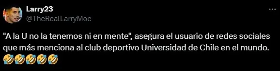 Fue ahí cuando el particular comunicador lo terminó de repasar, “‘A la U no la tenemos ni en mente’, asegura el usuario de redes sociales que más menciona al club deportivo Universidad de Chile en el mundo”, cerrando así sus singulares publicaciones.