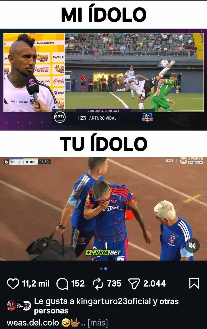 Fue precisamente Arturo Vidal el protagonista de una ‘polémica’ que se armó en Redes Sociales: como es de costumbre, el jugador de Colo Colo es bastante activo en redes y le dio ‘like’ a una publicación que humilla a Aránguiz.