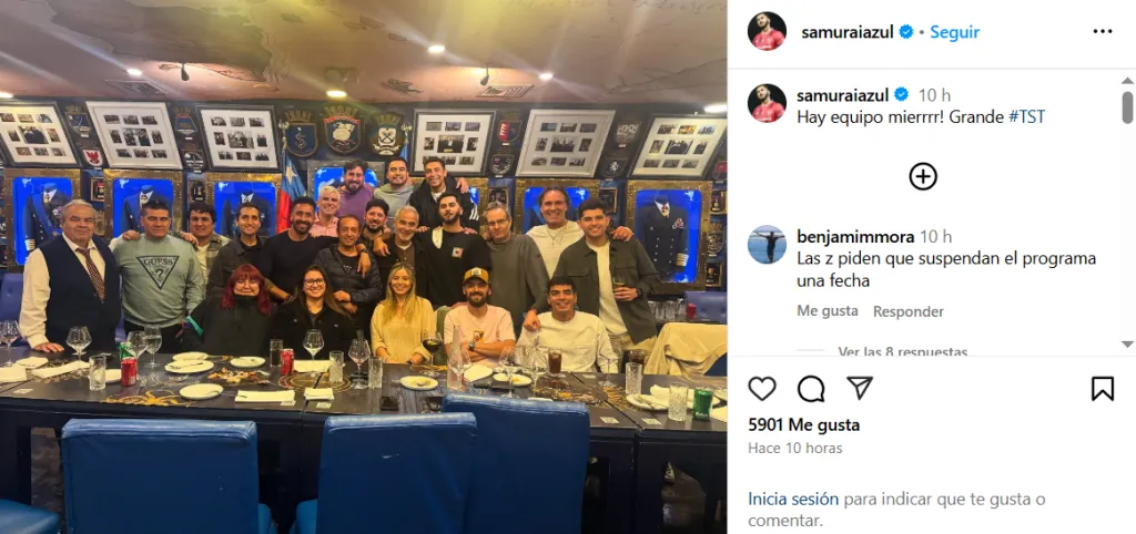 “¡Hay equipo, mierrr! Grande TST”, escribió el Samurai Azul, acompañando el mensaje con una imagen de una comida del equipo.