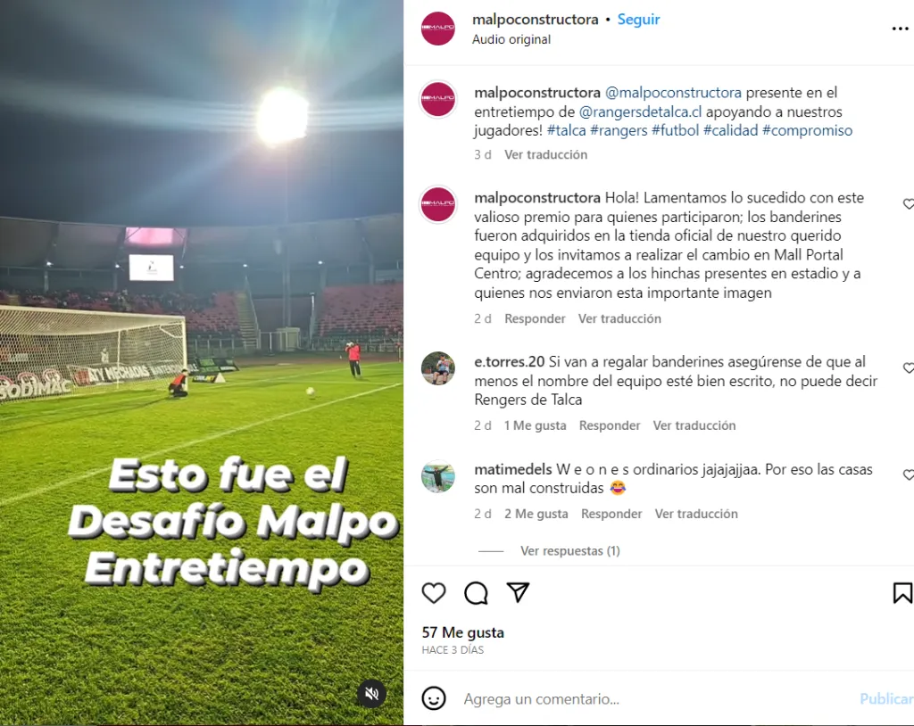 La propia Inmobiliaria Malpo tuvo que salir a dar excusas a través de sus redes sociales. “Lamentamos lo sucedido con este valioso premio para quienes participaron; los banderines fueron adquiridos en la tienda oficial de nuestro querido equipo”, expresaron.