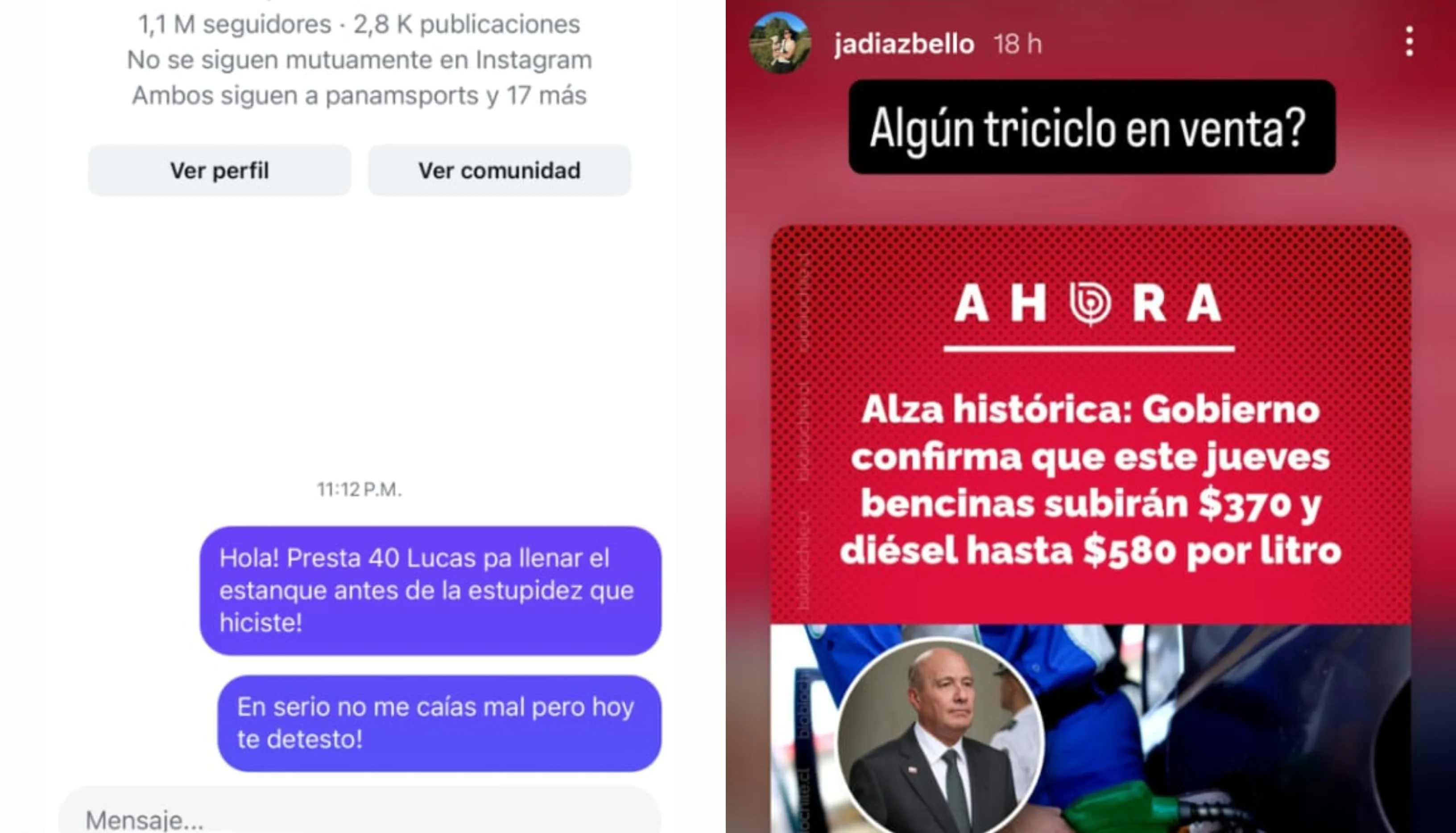 Con tono crítico, la exjugadora lanzó duros comentarios dirigidos al presidente José Antonio Kast mediante mensaje directo en Instagram: “Hola, presta 40 lucas pa’ llenar el estanque antes de la estupidez que hiciste” y “En serio no me caías mal pero hoy te detesto”, fueron parte de los mensajes que compartió públicamente en sus historias.