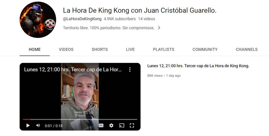 Sin embargo, el panelista de Deportes Agricultura y conductor en DSports ahora se lanzó a probar suerte con un nuevo canal de Youtube, llamado “La Hora de King Kong con Juan Cristóbal Guarello”.