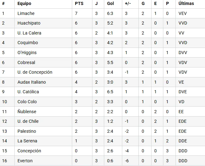REVISA LA TABLA DE POSICIONES EN EL FÚTBOL CHILENO