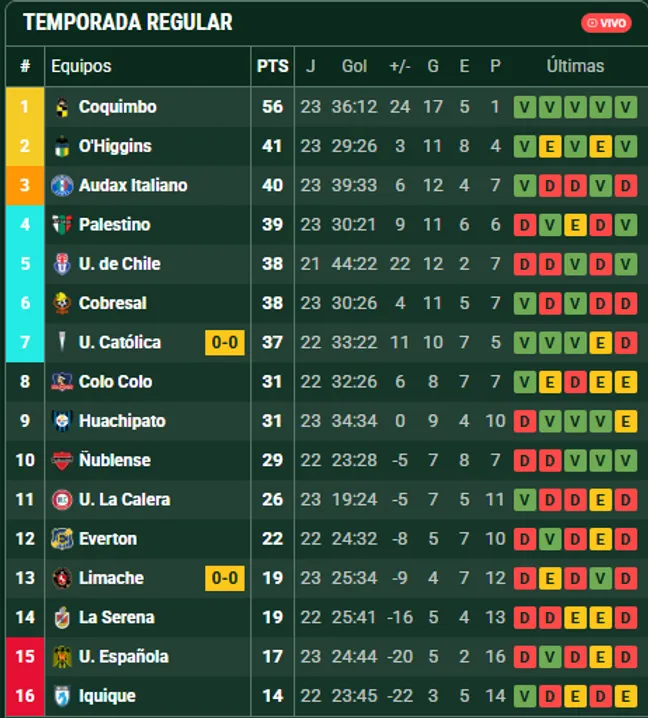 Así queda la tabla de posiciones del Campeonato Nacional tras el triunfo de O’Higgins sobre Palestino