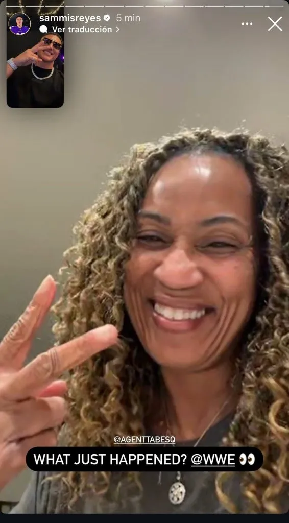 La agente publicó una historia donde se mostró hablando a través de una videollamada con nuestro deportista. Allí escribió “¿Qué acaba de pasar?”, etiquetando a la cuenta oficial de Instagram de la WWE. Acto seguido, Reyes lo reposteó y el rumor comenzó a circular en redes. ¿Será que Sammis Reyes seguirá los pasos de La Roca y se sumará a la chilena Stephanie Vaquer?