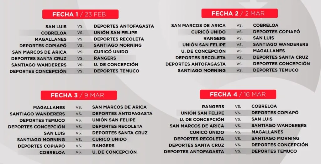 Para la semana del 2 de marzo visitará a San Marcos de Arica en el estadio Carlos Dittborn y para la semana del 9/3 recibirá a Universidad de Concepción en Calama en su tercer compromiso.