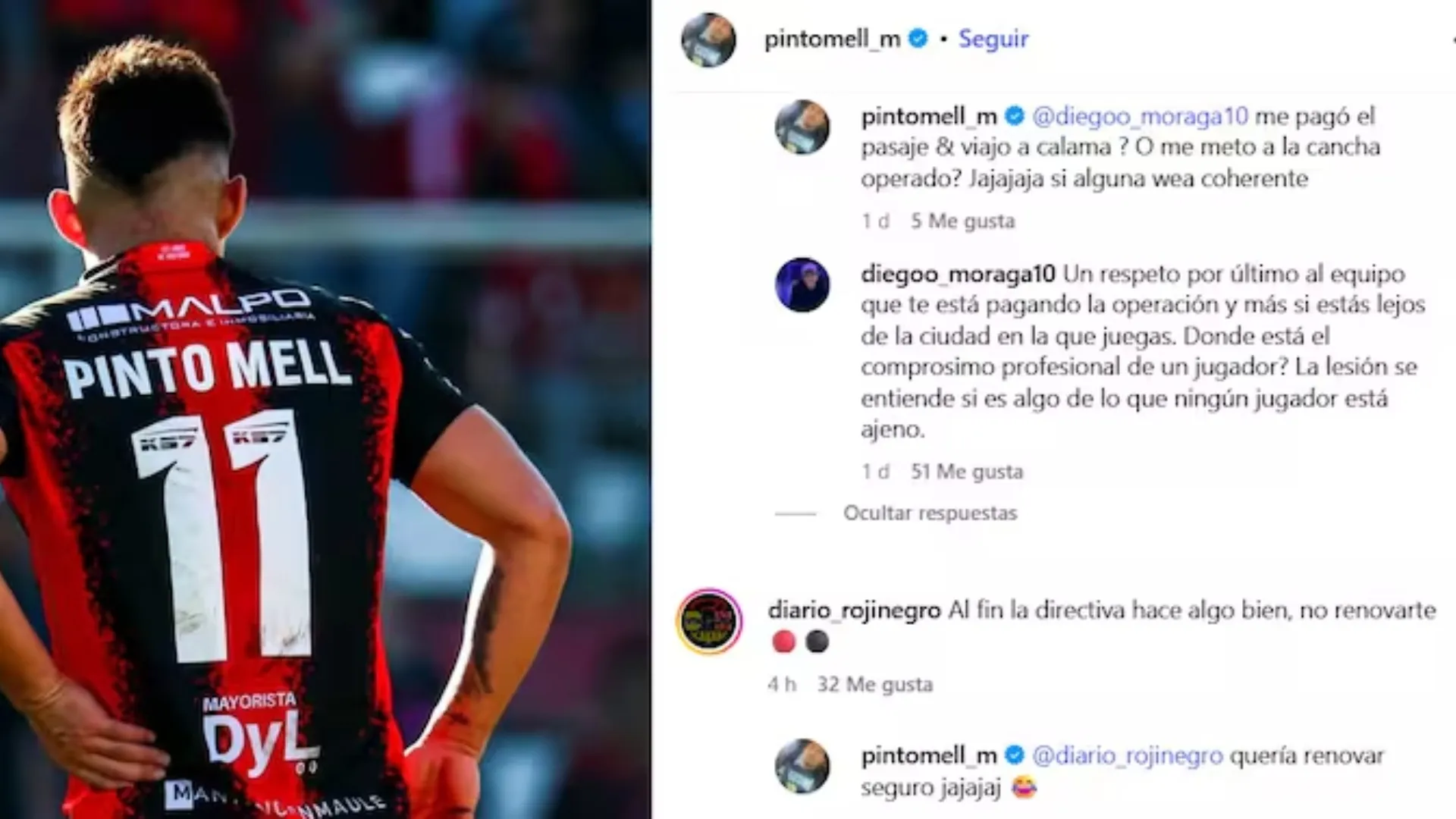 Las reacciones no tardaron. De inmediato aparecieron comentarios criticando su aporte en la temporada y apuntando a su compromiso. “También hace falta la autocrítica personal por la falta de compromiso hacia tus compañeros”, le respondió un hincha. Pinto no se quedó callado: “¿Me pago el pasaje y viajo a Calama? ¿O me meto a la cancha operado? Jajajaja, di alguna h… coherente”.