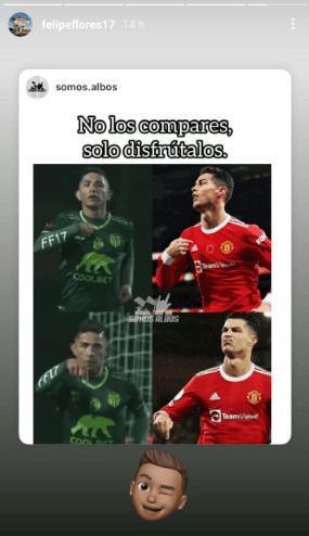 Hay que destacar que en más de alguna ocasiónFlores fuecalificado como “el imitador de Cristiano Ronaldo”, algo que el jugador se toma con sentido del humor y esta vez no fue la excepción en su cuenta de Instagram.