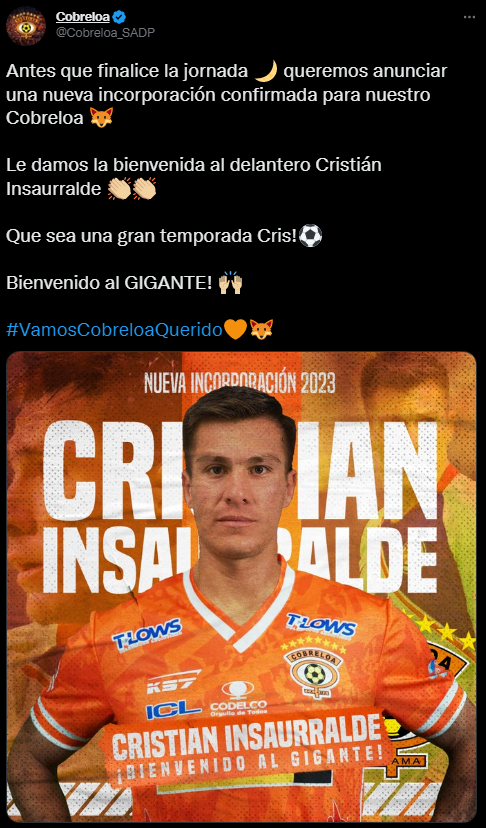 Es por eso, que los Zorros del Desiertos anunciaron la llegada de un nuevo refuerzo al cuadro de Calama, el delantero argentinoCristián Insaurralde, quien llega proveniente del Club Atlético Atenas de la Segunda División de Uruguay.
