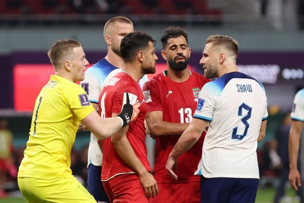 Luke Shaw discutiendo con los jugadores iraníes| Foto: Getty Images