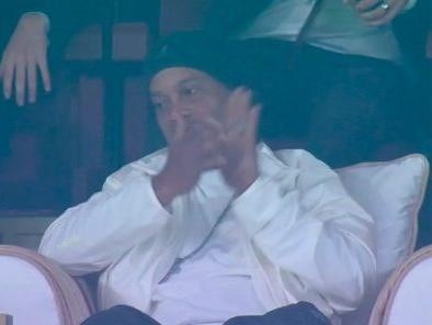El exjugador del Barcelona se encontraba en un palco del estadio Lusail junto a otras leyendas del fútbol brasileño: Roberto Carlos, Cafú y Ronaldo.