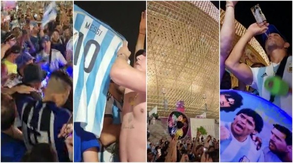 Pero la fiesta no solo fue de los protagonistas, si no también de los fanáticos que una vez que abandonar el recinto deportivo en Lusail, también siguieron la fiesta al son de tambores y entonando la misma canción.