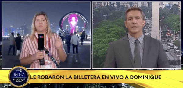 En uno de los tantos despachos de la profesional para Todo Noticias sufrió el robo de sus documentos en pleno jolgorio. En uno de los lugares céntricos de Qatar, Metzger aprovechó de entregar todos los detalles del Mundial y ahí fue presa de la delincuencia.