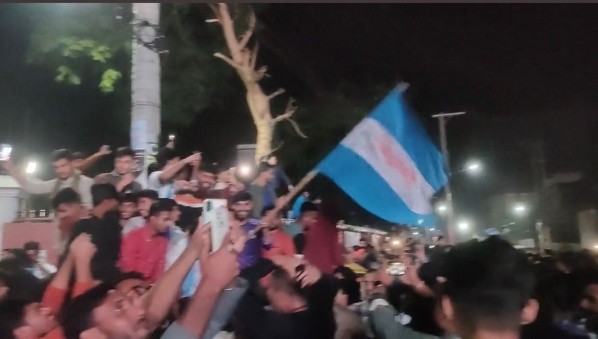 En Daca, capital deBangladesh se vivió una verdadera locura luego de la victoria de la Scaloneta. Miles de personas salieron a las calles a festejar la victoria albiceleste, con camisetas y hasta con banderas gigantes.
