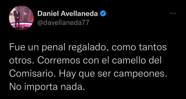 Sin embargo, y como a muchos argentinos, al reportero trasandino poco le importa que sean campeones con un penal regalado. Bilardo estaría orgulloso.