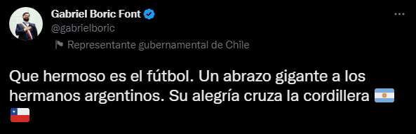 En la previa, el Presidente de Chile, Gabriel Boric, había enviado su mensaje apoyando a la Selección Argentina frente a Francia.