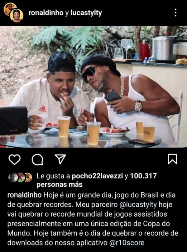 Si incluso el propio Ronaldinho este lunes en una publicación realzó la marca de Lucas en lo que respecta a la presencialidad de partidos en una Copa del Mundo.