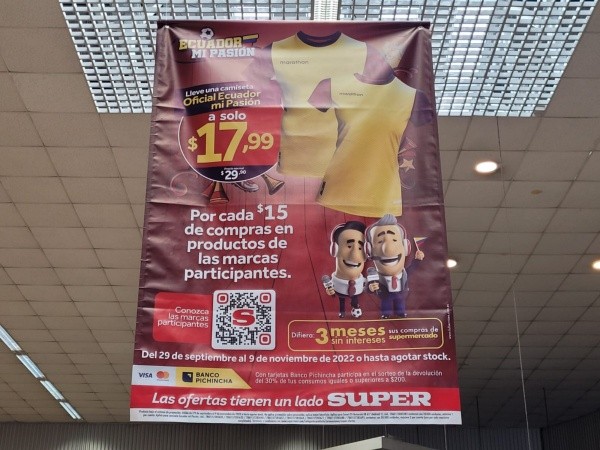 Lo más cercano que Bolavip pudo vislumbrar relacionado a la Copa del Mundo fue en una panificadora que vendía galletas alusivas a la bandera de Ecuador y que era adornada con la leyenda “Qatar 2022” y un balón de fútbol, como también en un Supermercado que si por cierta cantidad de dinero en compras, el cliente agregaba casi 18 dólares y podía canjear la camiseta de la selección.