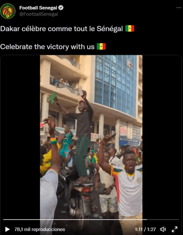 Ante esto, se desató la locura en Dakar, capital de Senegal, donde miles de personas salieron a las calles a festejar la histórica clasificación del conjunto africano.