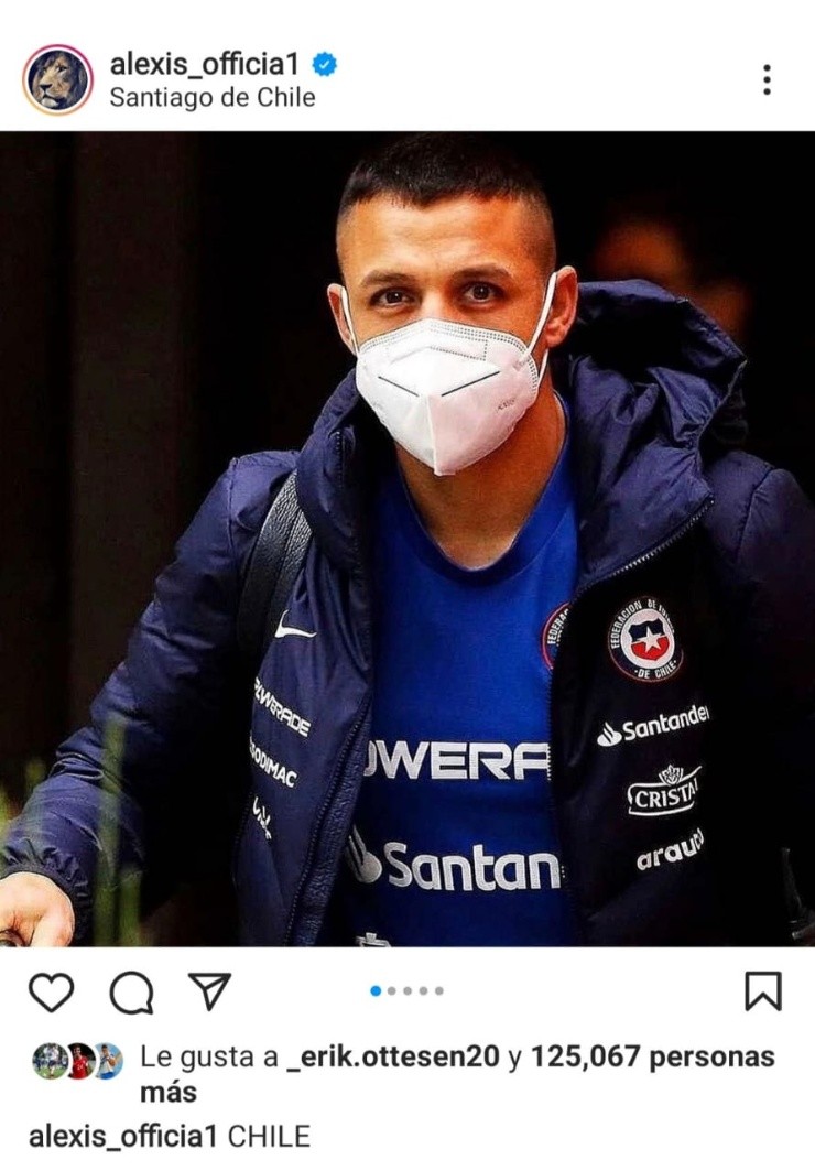 Minutos más tarde, fue el mismoAlexis Sánchez que subió una serie de fotos a Instagram con la indumentaria de entrenamiento de la Selección Chilena, entrenando y colgó solo una palabra en la descripción: “CHILE”.